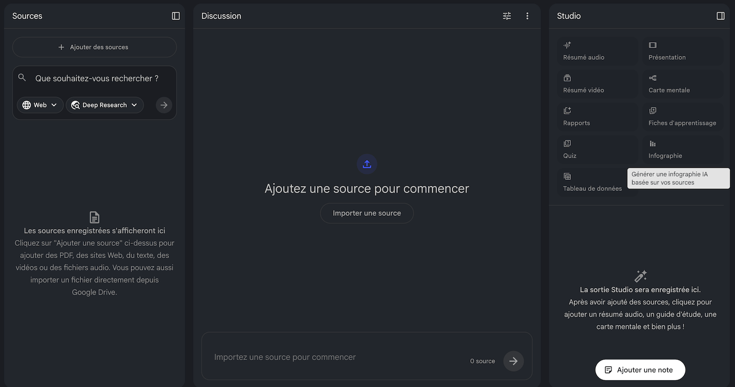 Il est disponible avec la version gratuite de Google AI, mais avec des limites serrées : 100 carnets, 50 sources par projet et 3 résumés audio par jour. AI Plus double ces limites.
